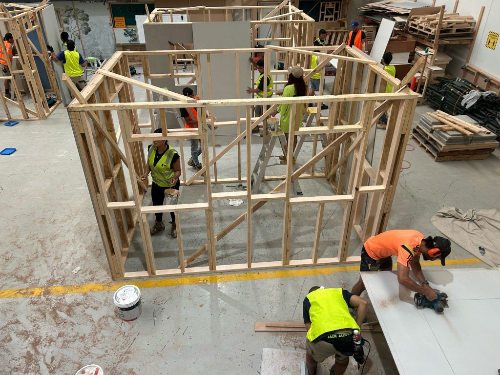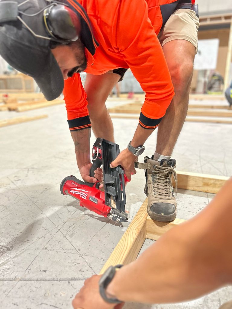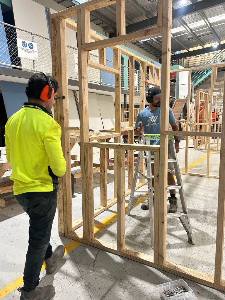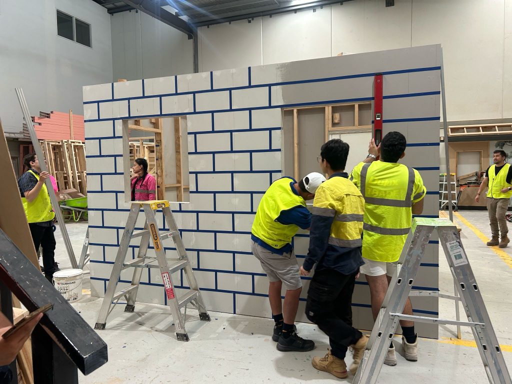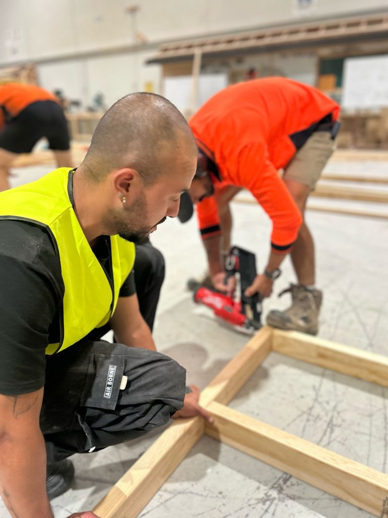 Students were immediately involved in all stages of the build, applying classroom concepts to practical construction tasks. With guidance from Orange College’s experienced trainers, they’ve gained hands-on experience in: