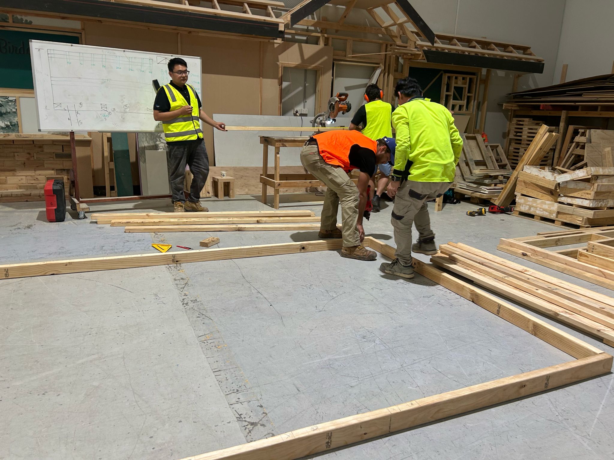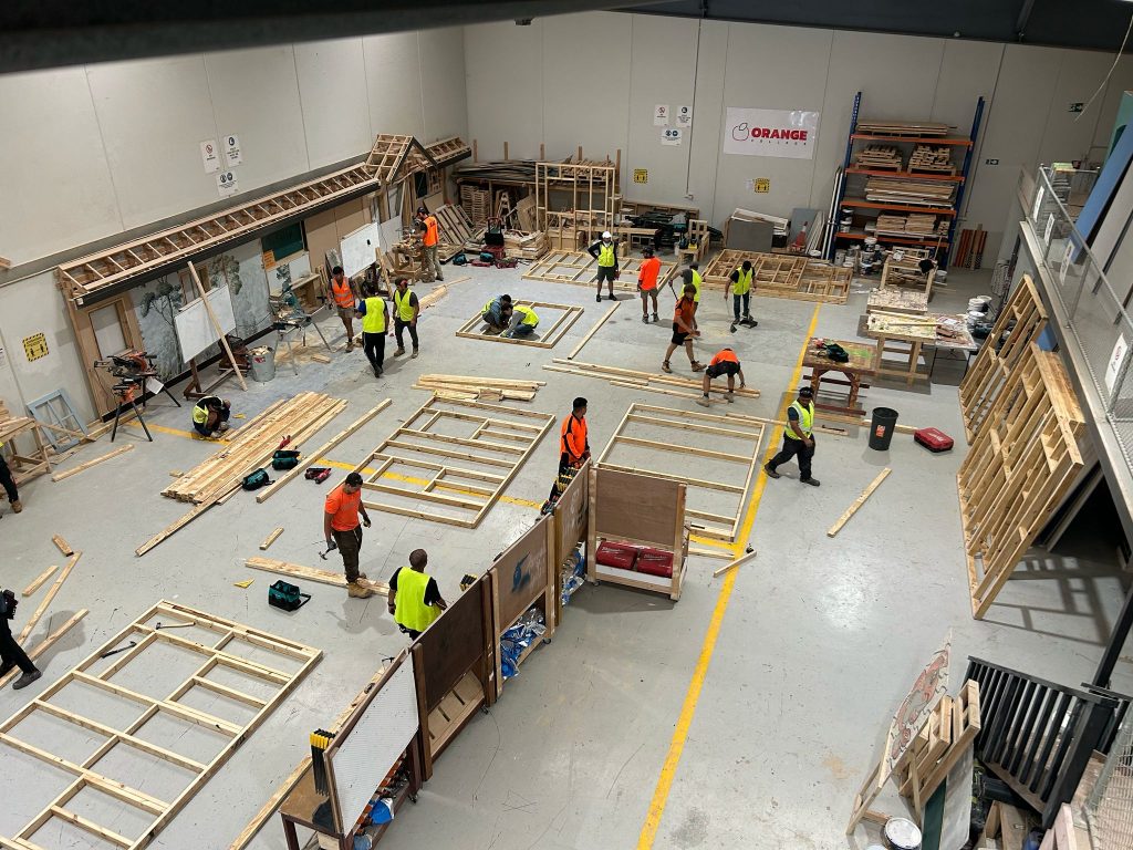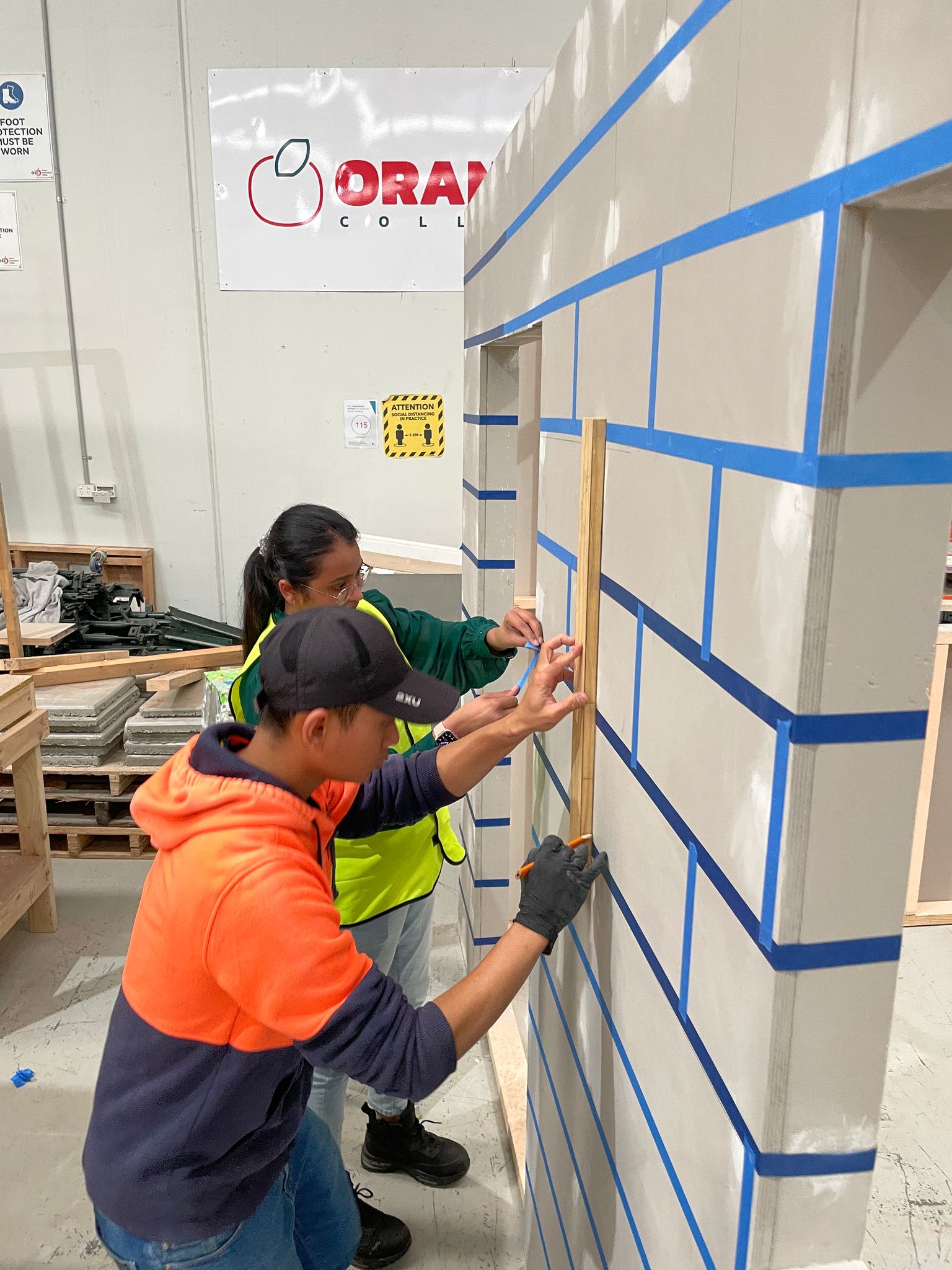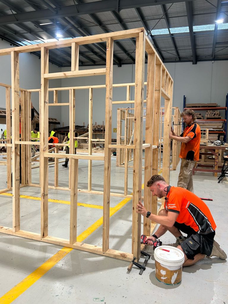 Students were immediately involved in all stages of the build, applying classroom concepts to practical construction tasks. With guidance from Orange College’s experienced trainers, they’ve gained hands-on experience in: