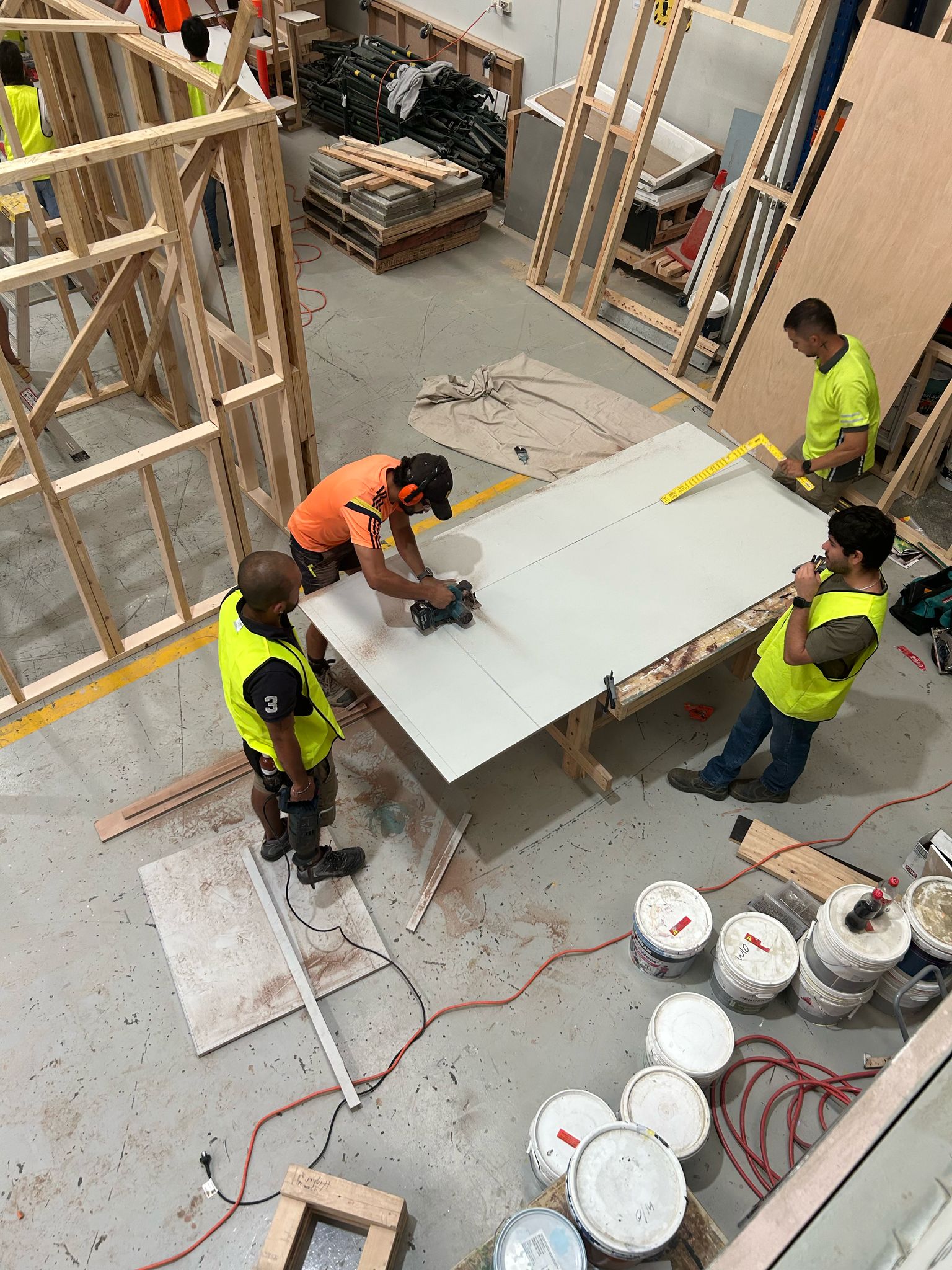 This collaboration between trades mimics real industry practice, where carpenters, painters, and other trades must work together to achieve a final product.
