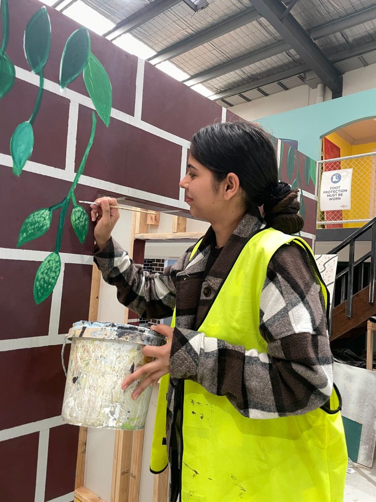 Once the carpentry team completed the structural builds, the Painting and Decorating students took over, guided by trainers Mark McGonagle and Anthony Belia. Their mission: to transform each structure with period-authentic paintwork that brings the scenes to life — from weathered timber in the Wild West to colour palettes suited for a vintage townscape.